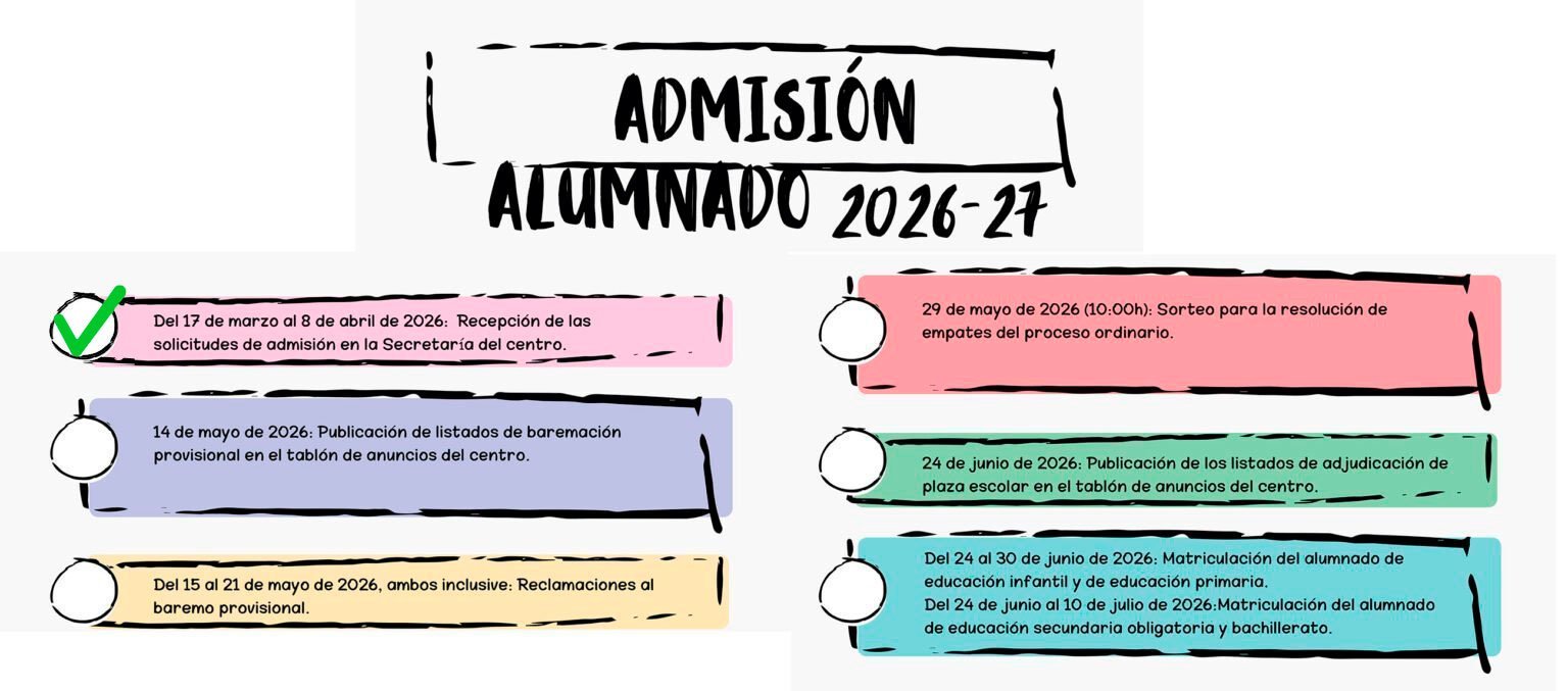 Admisión del alumnado en los centros docentes sostenidos con fondos públicos de la Comunidad de Castilla y León, para cursar en el Curso académico 2026-2027 enseñanzas de segundo ciclo de Educación Infantil, Educación primaria, Educación Secundaria Obligatoria (ESO), Bachillerato.